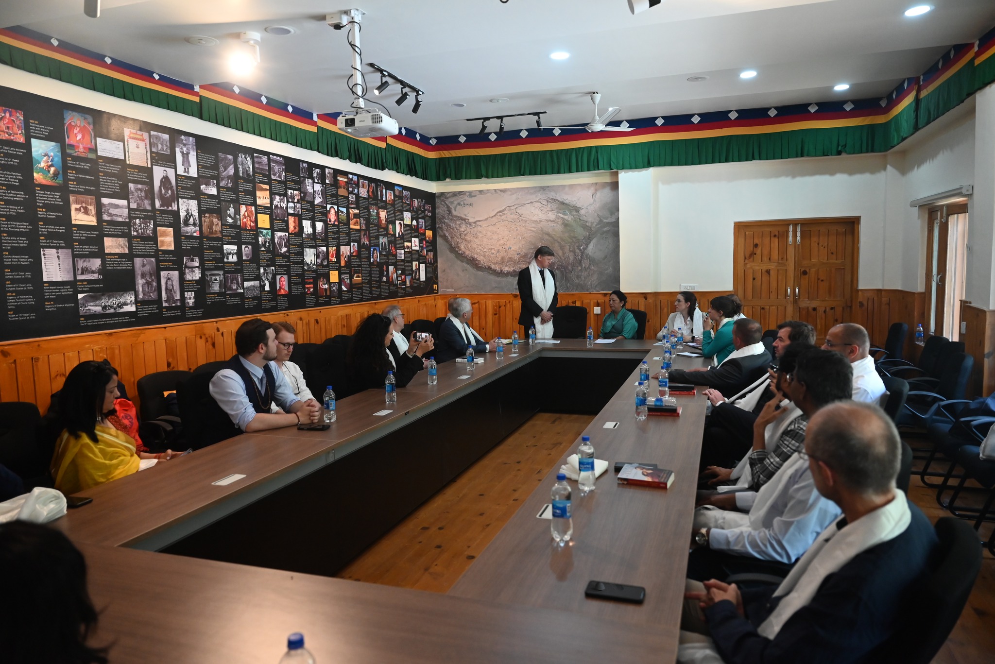 在达兰萨拉为期四天的访问中,代表团于 4 月 28 日上午觐见了西藏精神领袖第十四世达赖喇嘛尊者,随后访问藏人行政中央总部并举行了一系列会谈。代表团还参观了位于达兰萨拉的西藏儿童村、莫兰西藏信息技术研究中心、藏医历算学院、乃琼寺、西藏图书与文献资料馆、西藏博物馆、西藏歌舞与戏剧表演艺术学院和罗布林卡西藏文化保护中心等重要机构。