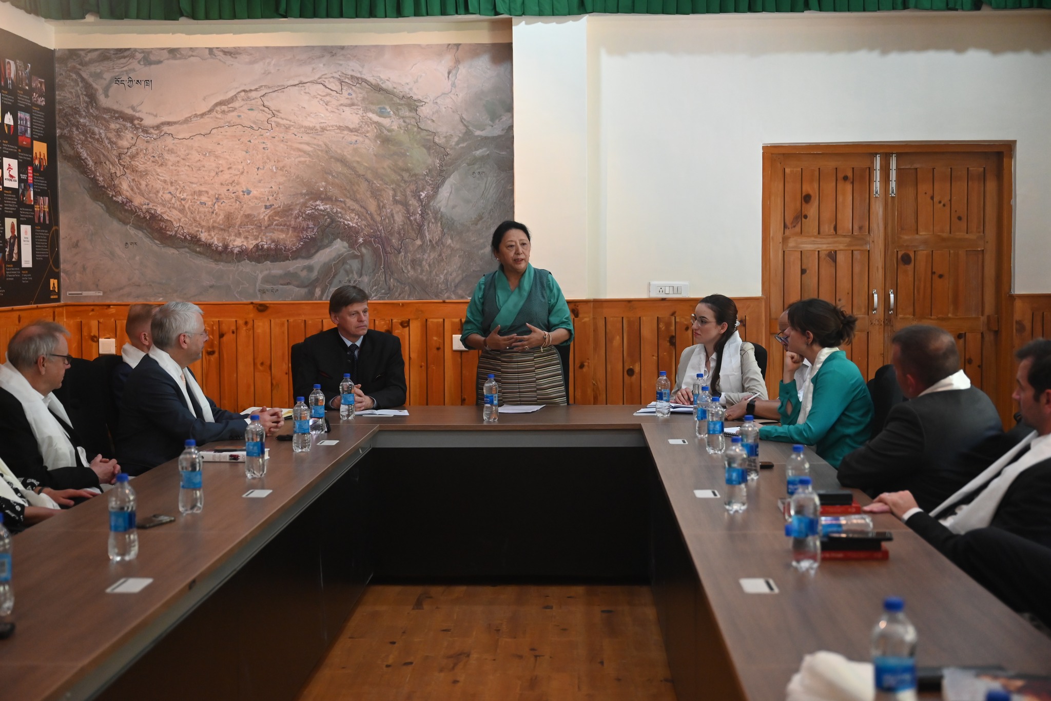 藏人行政中央安全部长兼代理司政嘉日卓玛于 4 月 28 日在噶厦秘书处欢迎来访的德国弗里德里希·瑙曼基金会驻南亚分会代表团,双方就西藏自由事业等议题进行了深入了会谈。