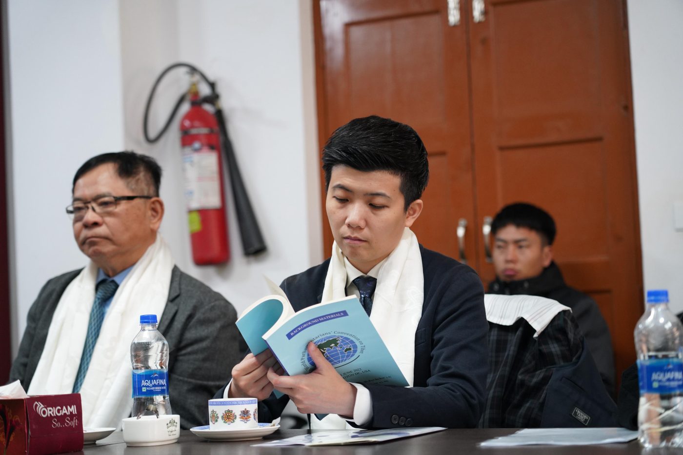 由台湾国会图伯特(西藏)连线会长吴沛忆议员率领的台湾立法院代表团于 2 月 26 日访问了图伯特人民议会,代表团成员包括立法院议员沈发惠、台北市议员李建昌、台北市议员苗柏雅,以及台湾民主基金会副执行长郑纯宜。