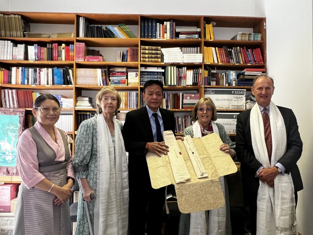 这两份文献由贝锡爵士的家族成员与邦瀚斯拍卖行(Bonhams)代表贾尔斯‧佩皮亚特亲自交予司政,象征着一次极具意义的文化回归行动。驻伦敦代表次仁央金与办事处工作人员共同见证了这一盛况。