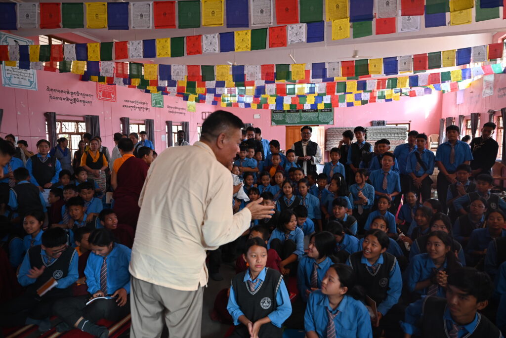 在宗喀曲德寺用过午餐后,司政在桑布扎西藏学校向该校师生发表演讲,着重强调了了解西藏等历史和印藏关系的重要性,并强调了两国之间的历史渊源。