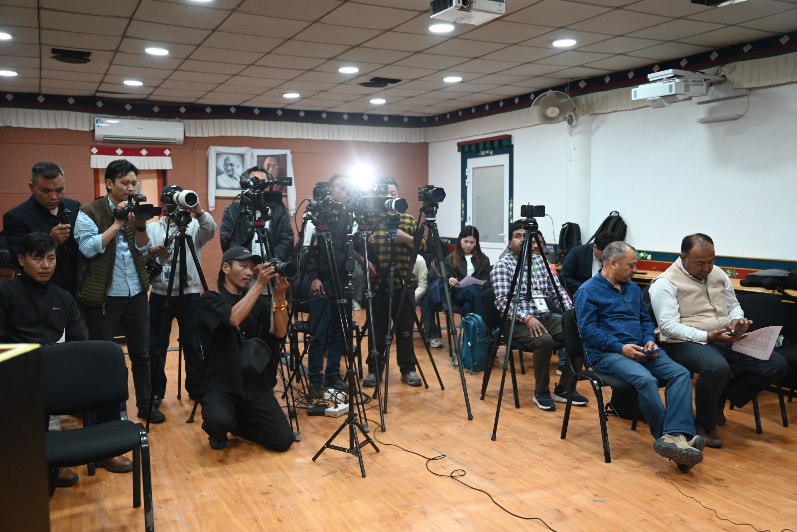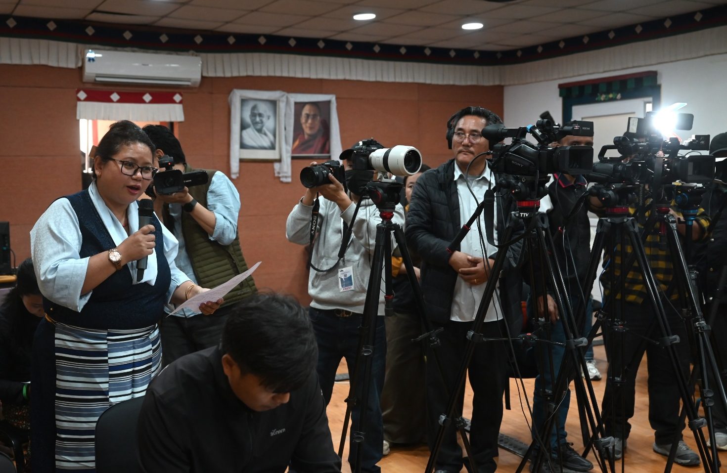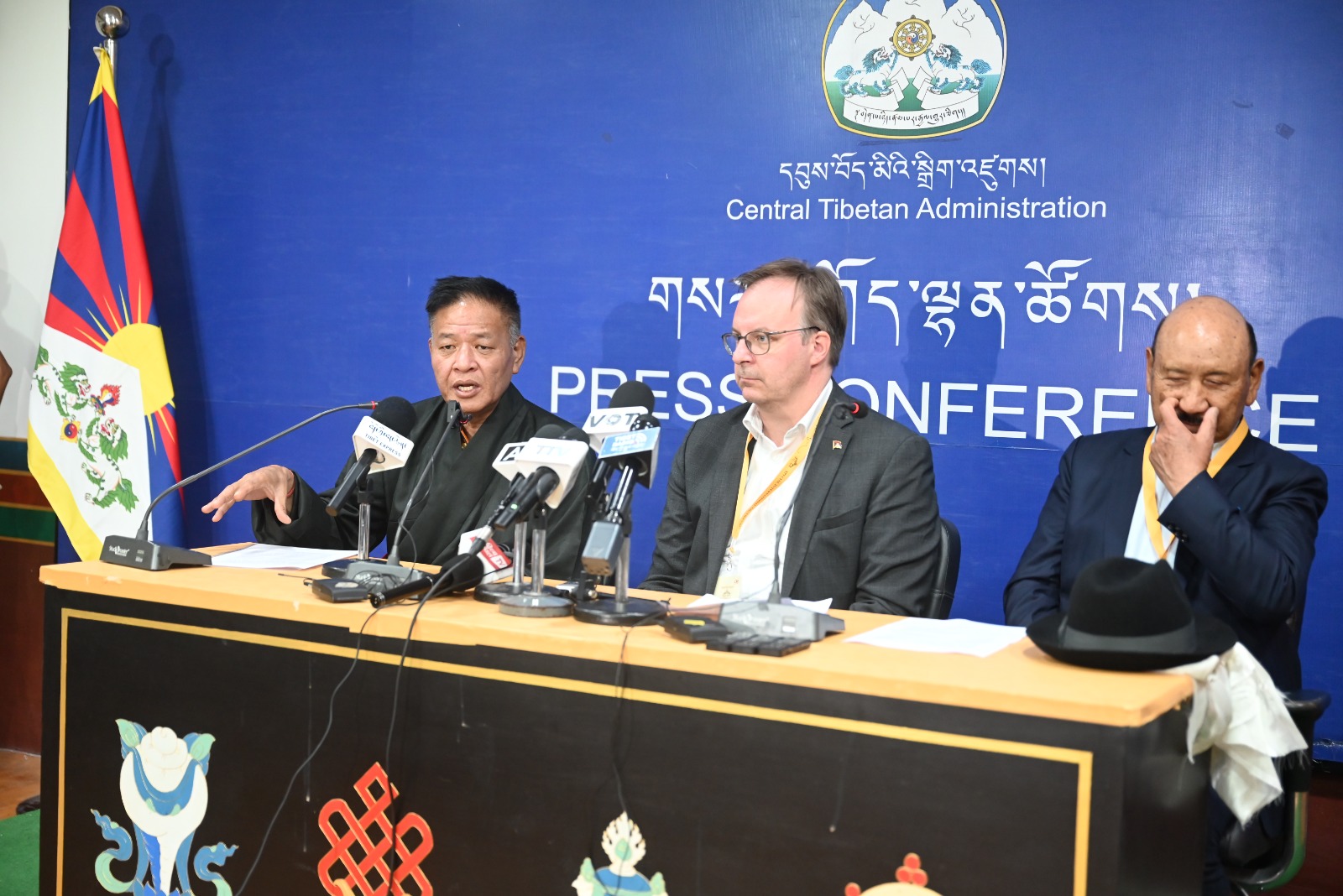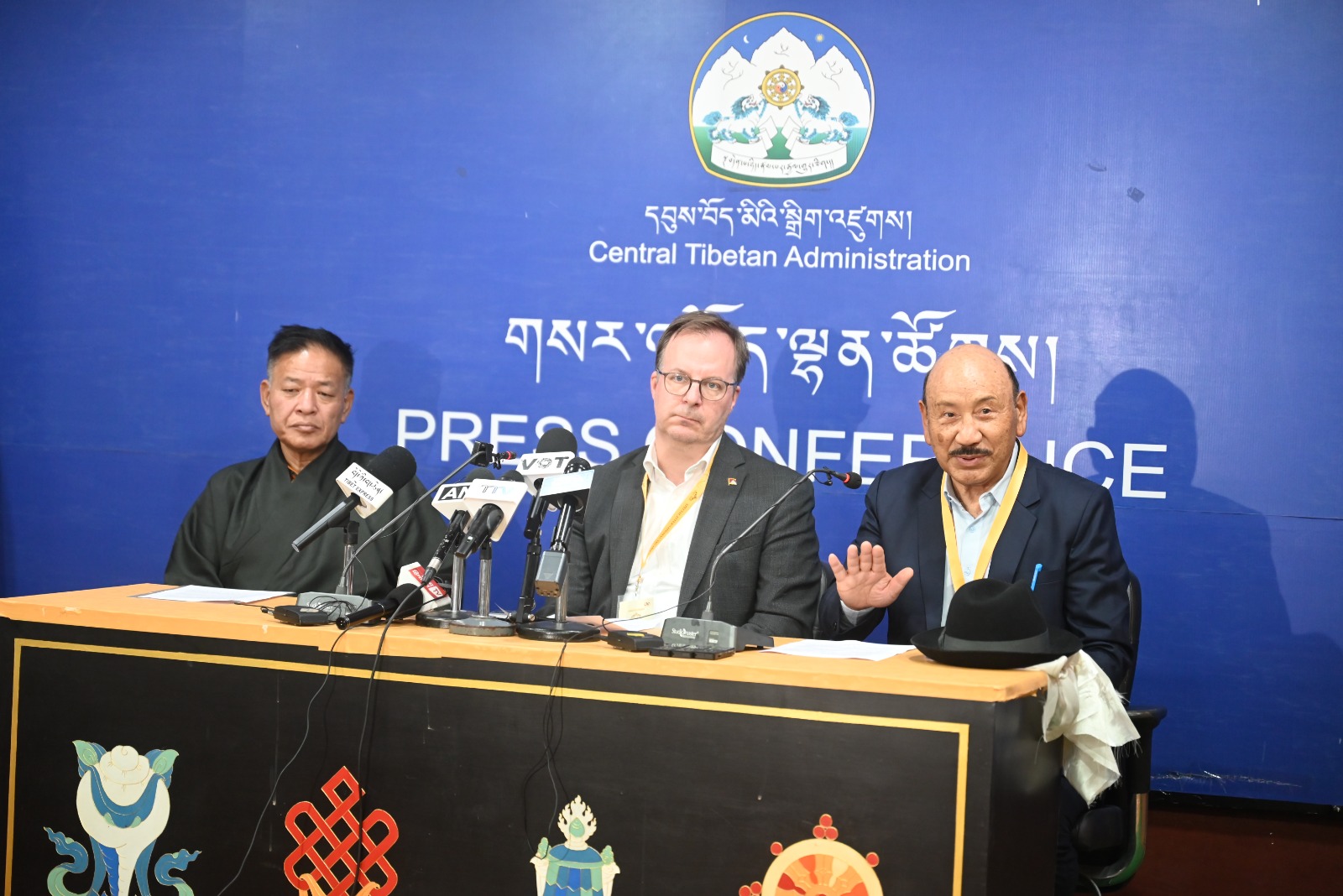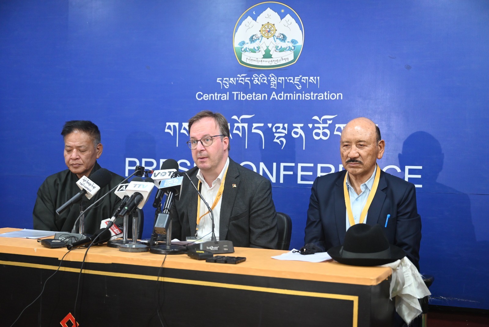 新闻发布会由藏人行政中央发言人丹增列偕主持。他介绍了此次会议的目的,并向媒体介绍了来自 32 个国家、共 100 多名出席为期三天的国际支持图伯特团体特别会议的代表。