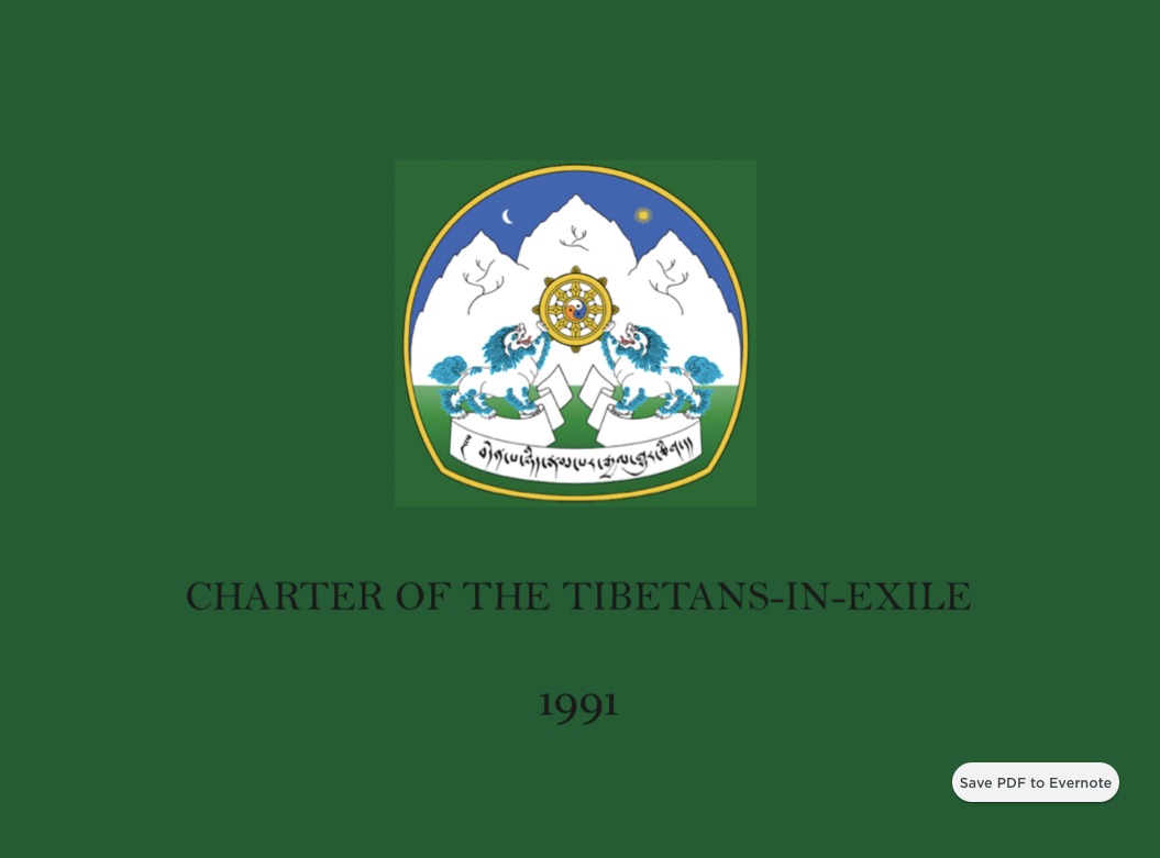 为了确保流亡西藏的政治制度完全民主化,1963 年 3 月 10 日达赖喇嘛尊者提出的《未来西藏宪法》(草案)正式颁布实施。 1991年,第11届西藏人民议会讨论和通过了《流亡藏人宪章》,同年 6 月 28 日,达赖喇嘛尊者正式批准新了《流亡藏人宪章》,使藏人行政中央和西藏人民议会的职权和功能近一步规范化。一年后,尊者在批准设立最高法院,以及三个自治机构;选举委员会、公共服务委员会和审计署。