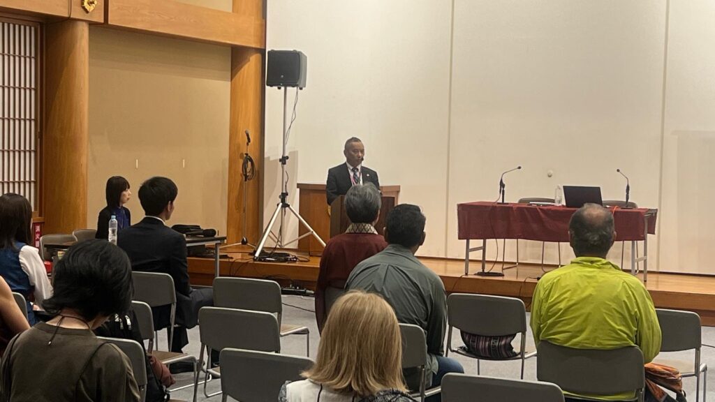 吉村教授在讲座活动上发言 2025 年 5 月 3 日  照片/驻日本办事处提供