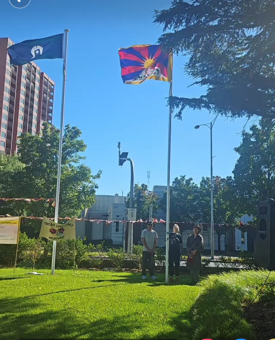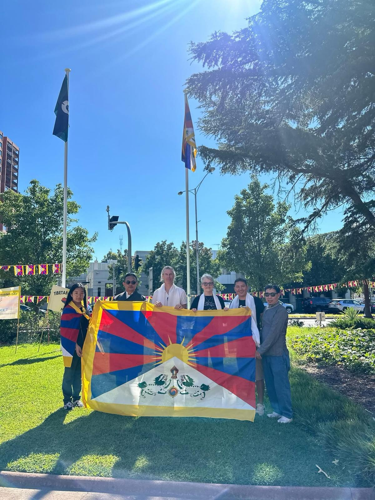 澳洲国会前参议员、国会支持西藏小组联合主席珍妮特·赖斯(Janet Rice)和前议员西蒙·克劳福德(Simon Crawford)出席了升旗仪式,他们提出了升起西藏国旗的动议,并鼓励西藏人民永远不要失去希望,继续团结一致,让西藏国旗在世界各地升起。