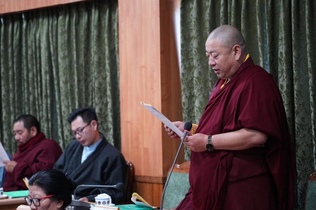 议员格西阿彤·仁钦坚参提出了藏人行政中央 2025 年至 2026 年度财政预算的辩论议案,并得到了议员丹增吉达的支持。随后,第十二届公共账目委员会(PAC)主席格西阿彤·仁钦坚参提交了委员会的报告。第一天的会议还通过了声援境内藏人和对近期逝世的重要政治人物的悼念决议。