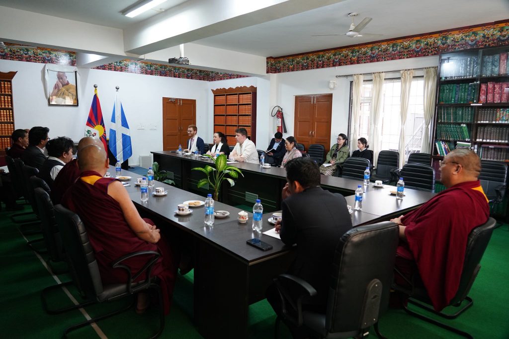 在藏人行政中央驻伦敦代表次仁央金的陪同下,苏格兰跨党派支持西藏小组主席罗斯·约翰·格里尔(Ross John Greer MSP)与人权专业人士埃莉诺·简·伯恩-罗森格伦(Eleanor Jane Byrne-Rosengren)、苏格兰绿党研究与政策大臣卡梅伦·威廉·加勒特(Cameron E. William Garrett)访问西藏人民议会秘书处,会见了议长堪布索朗丹培、副议长卓玛次仁和常务委员会成员,并就双方共同关心的话题进行了深入的讨论。