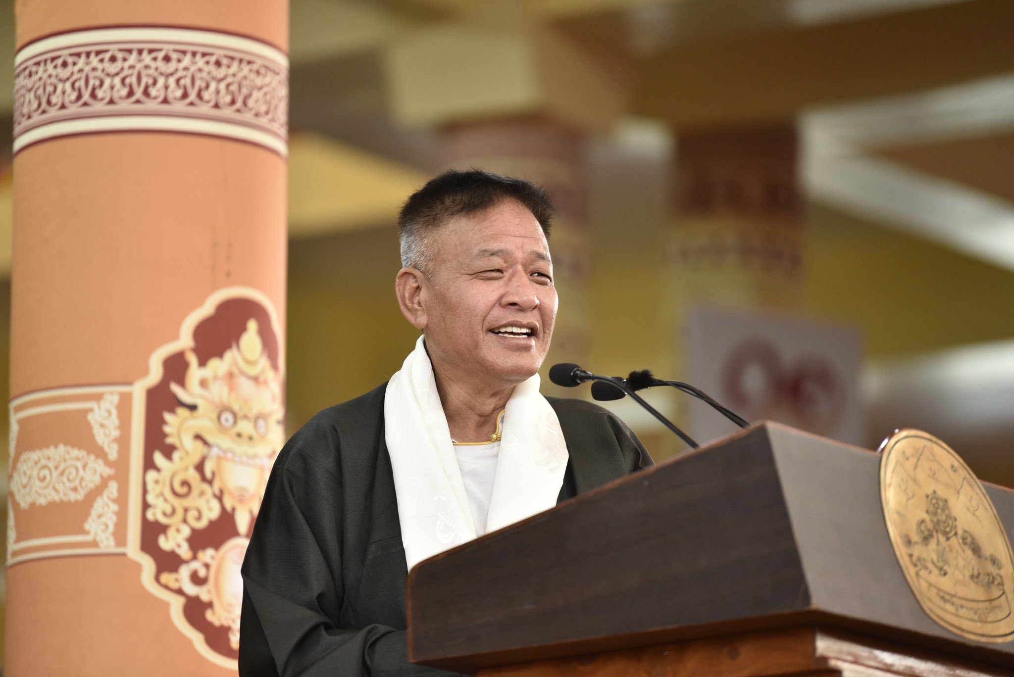 最后,祈愿尊者达赖喇嘛常久驻世,继续推广世界和平与幸福理念,祈愿尊者的一切愿景功德圆满。噶厦自认为在任期内尽职尽责,一片赤心勤务。在今天的庆典上,我们团结一致再次宣誓—实践尊者达赖喇嘛的慈悲理念,并为此发出呼吁。