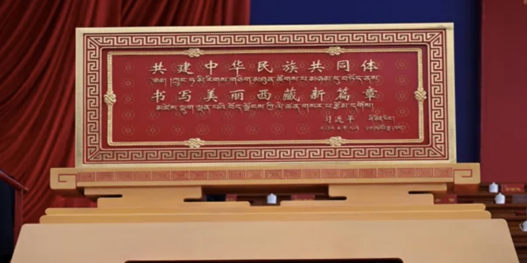 习近平题词的“共建中华民族共同体,书冩美丽西藏新篇章”贺匾   照片/载自网络