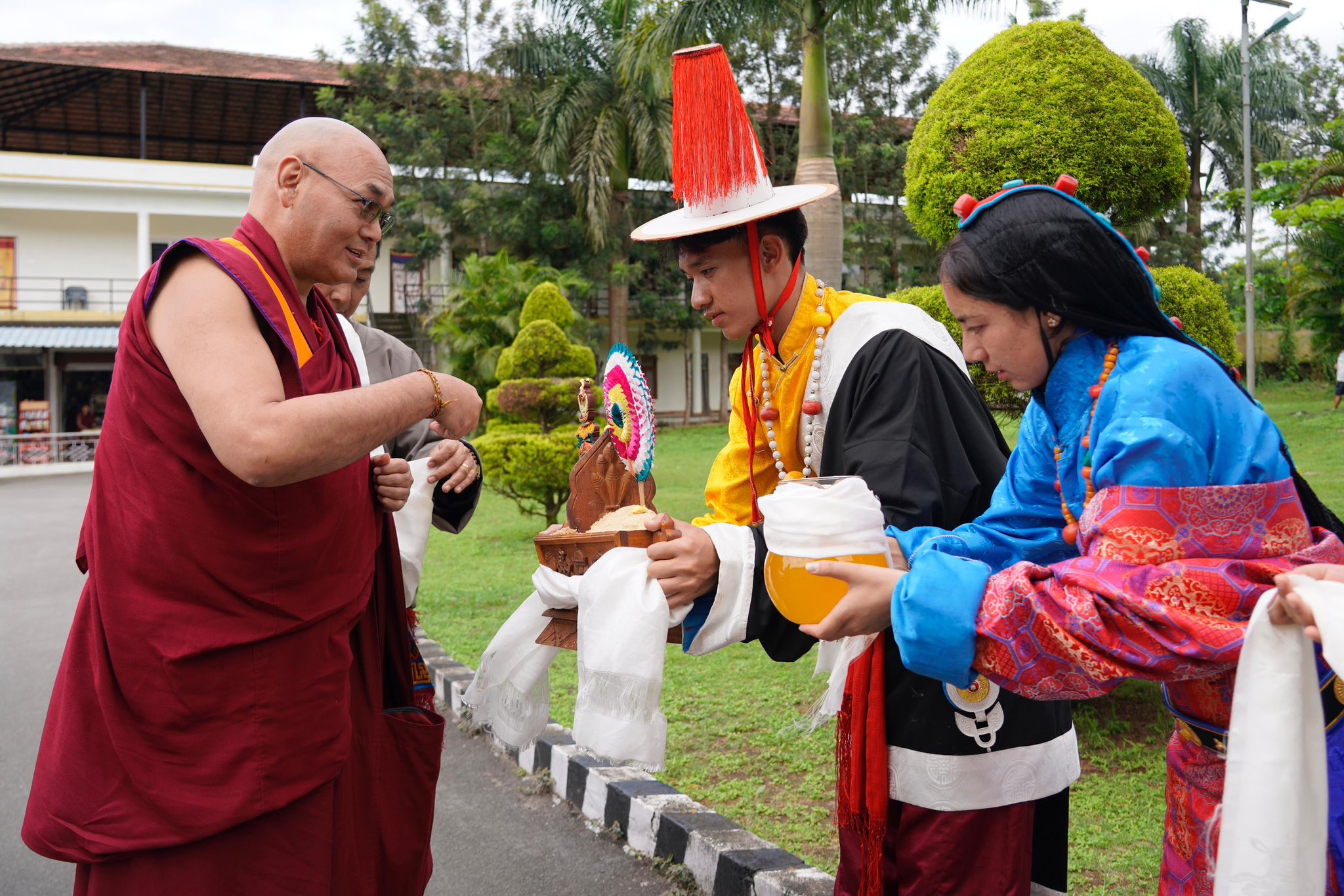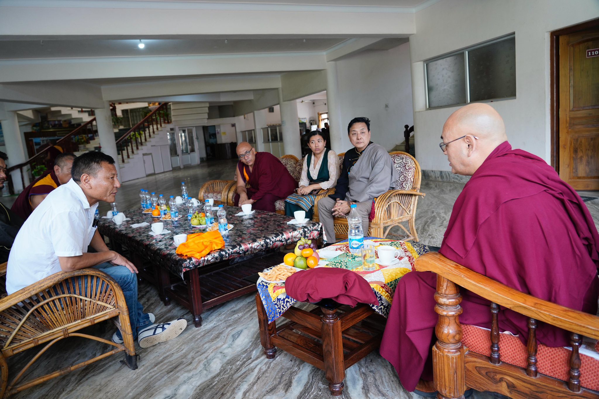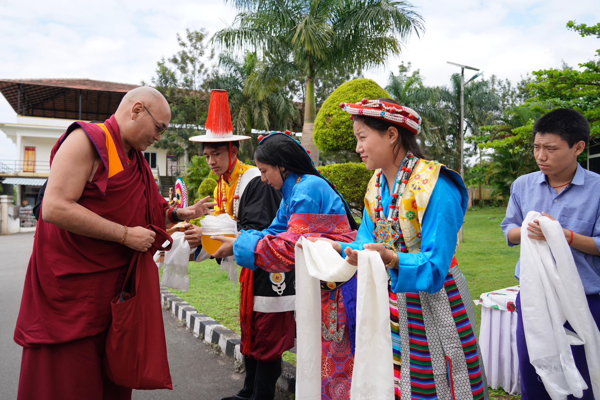 迎接人员包括西藏人民议会议员贡确亚培、地方司法专员平措巴登、鲁桑藏人定居点行政官员格勒炯乃、德拉藏人定居点行政官员阿旺丹增、色拉杰寺管家、当地非政府组织的代表及学生等。