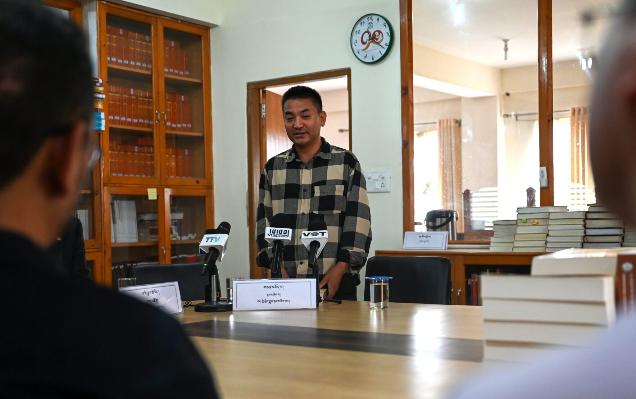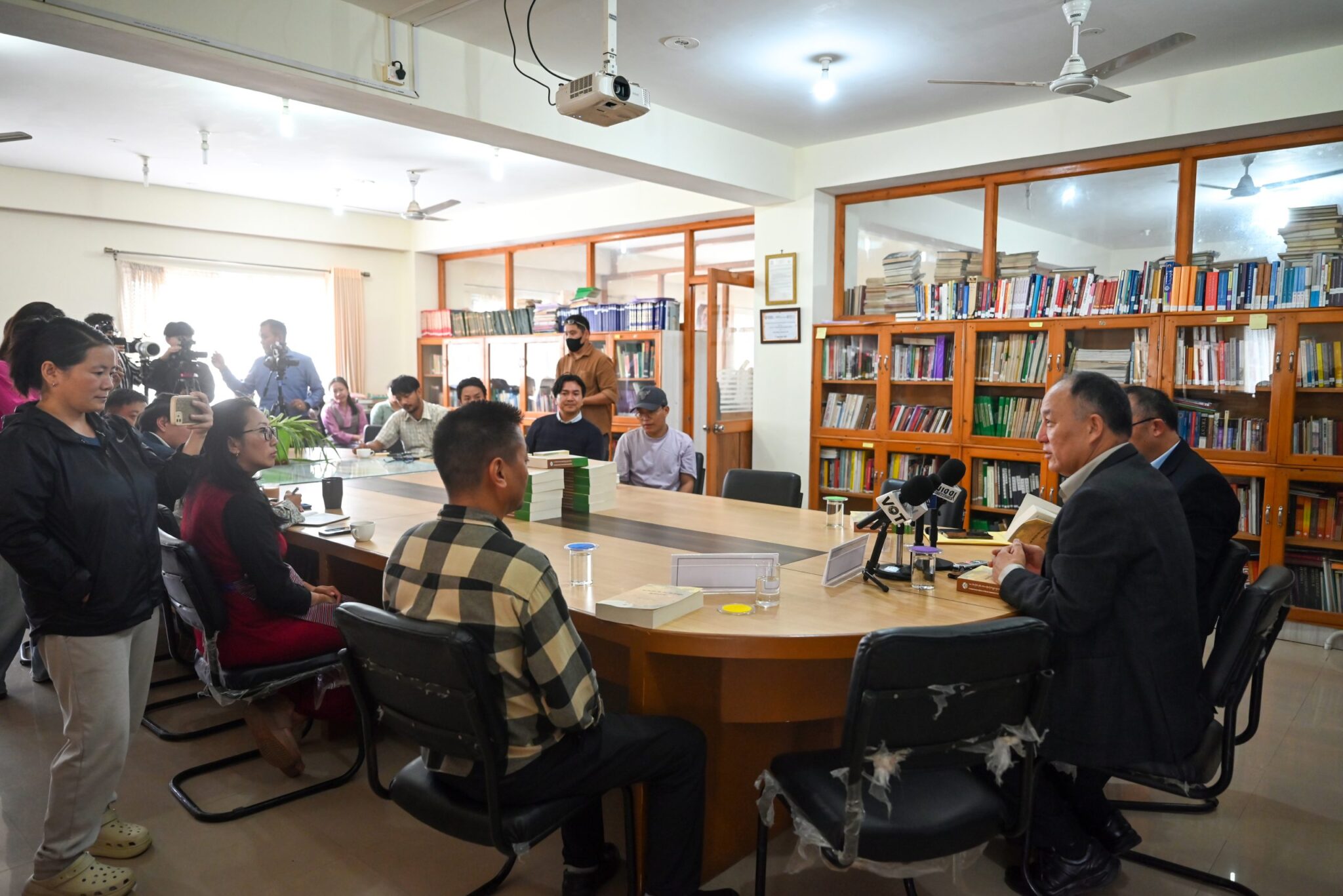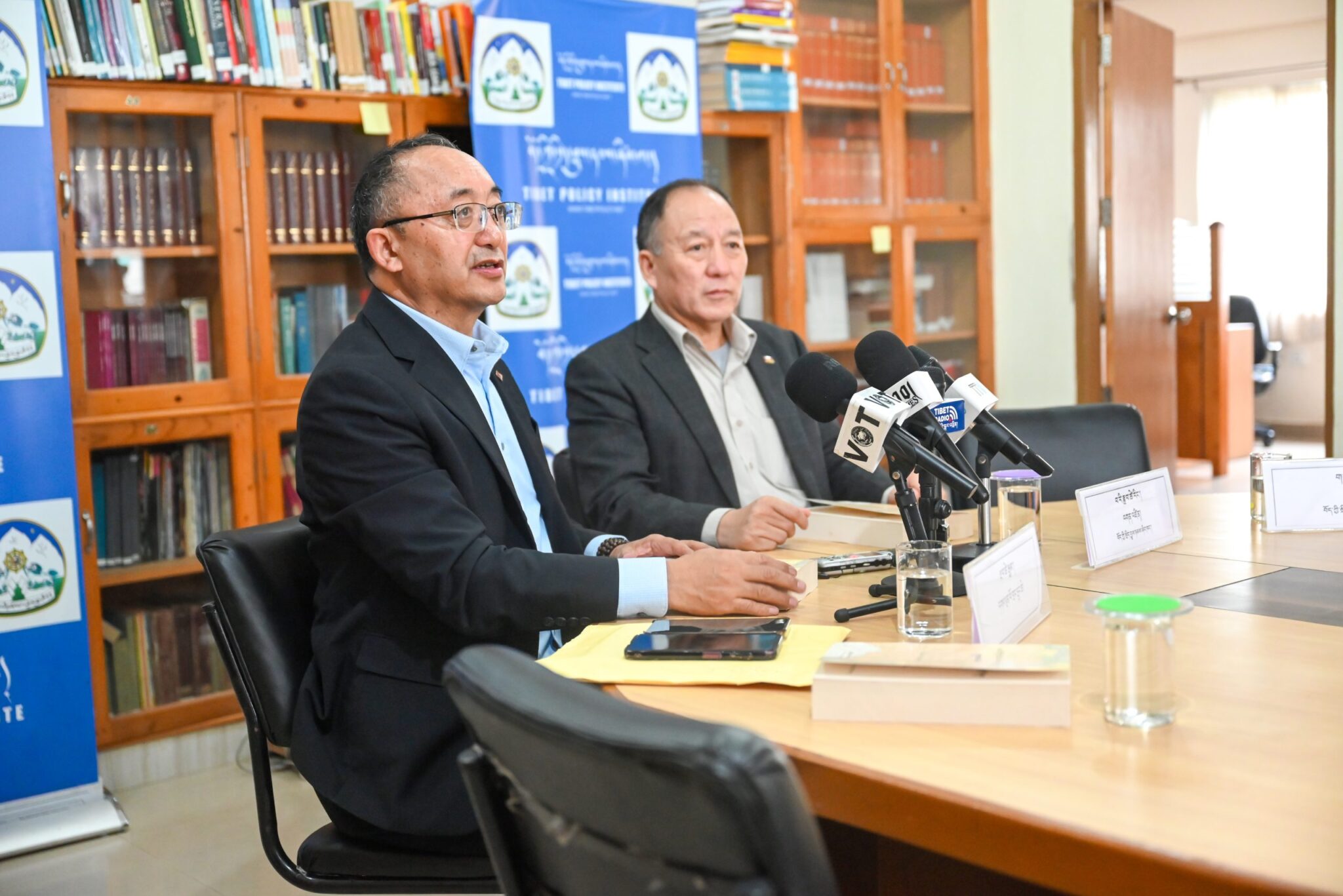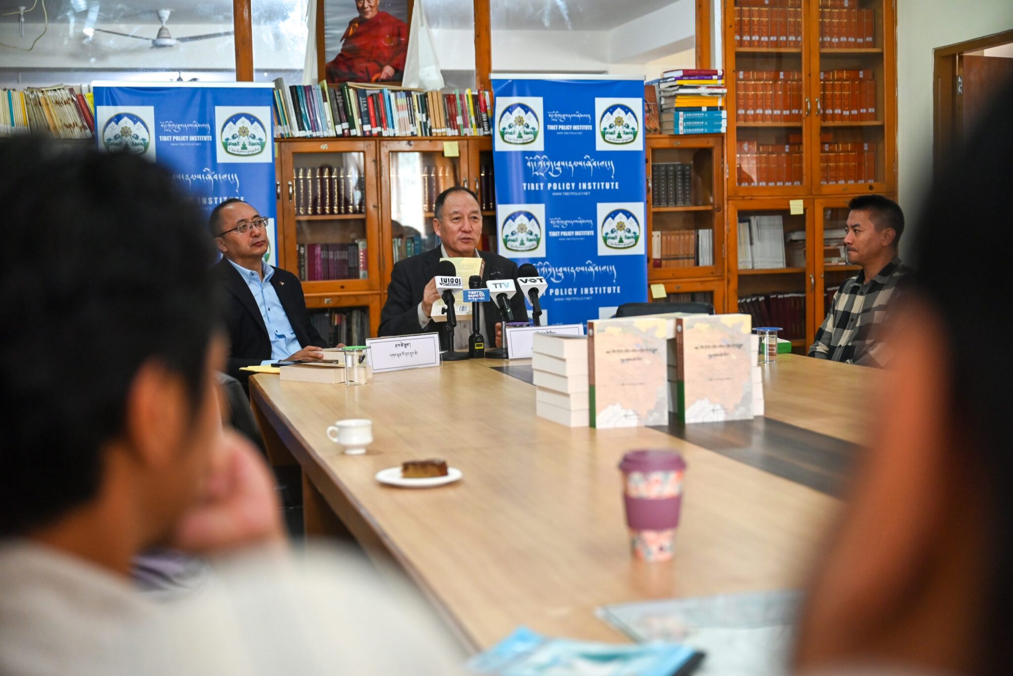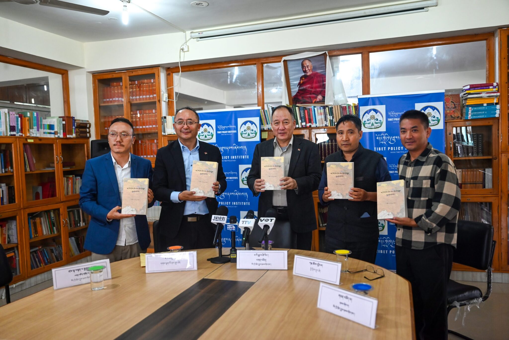 达赖喇嘛尊者办公室秘书长才嘉、外交与新闻部秘书长噶玛曲英、该书作者兼西藏政策研究中心主任达瓦才仁、该中心副主任藏拉·丹巴坚参,以及研究员坚索巴出席了新书发布会。
